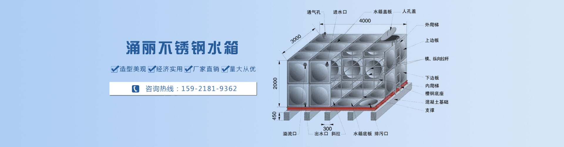 本公司生產(chǎn)的水箱采用衛(wèi)生級(jí)別極高的304/2B、316L、444等不銹鋼材料,經(jīng)精心設(shè)計(jì)制造而成。具有美觀大方、光潔亮麗、質(zhì)量穩(wěn)固、經(jīng)久耐用等優(yōu)點(diǎn)。被廣泛應(yīng)用于太陽能、空氣能、鍋爐熱水工程的不銹鋼保溫水箱;空調(diào)系統(tǒng)工程的隔熱水箱;消防工程配套消防水箱;居民區(qū)、商廈、學(xué)校的生活水箱;極寒地區(qū)的防凍水箱……經(jīng)這種水箱儲(chǔ)存的水更清潔衛(wèi)生。具有不變色發(fā)黃、無雜質(zhì)、無細(xì)菌等優(yōu)點(diǎn),是混泥土水箱、玻璃鋼水箱、塑料水箱的替代品。是目前世界上普遍使用的新型環(huán)保儲(chǔ)水產(chǎn)品,是國家大力提倡使用的環(huán)保設(shè)備,也是新世紀(jì)人民健康生活的優(yōu)質(zhì)選擇。